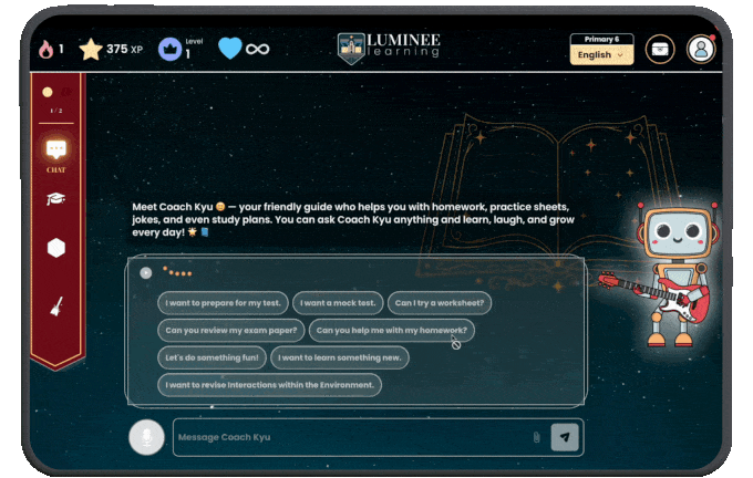 Meet Coach Kyu — Luminee’s calm, friendly AI coach who makes learning feel supported, not automated.